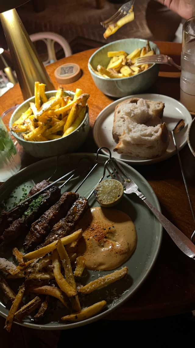 - Prime rib-eye from uruguay, expertly grilled for a deep, smoky flavour. Finished with parlsey and garlic butter, and served with your choice of sauce: herbaceous chimichurri, spiced chipotle, or café de paris. Accompanied by one side dish of your choice