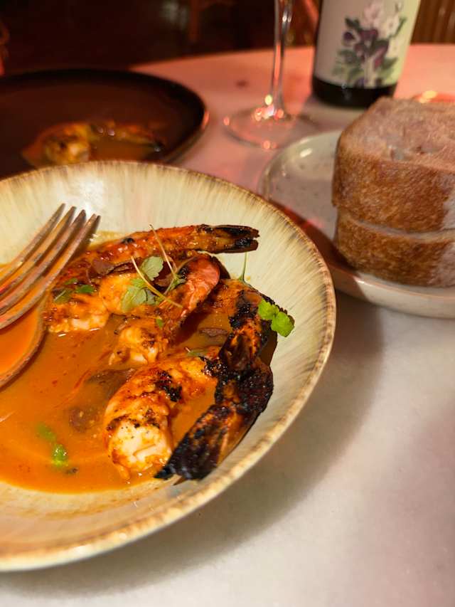 - Succulent prawns grilled over charcoal, paired with a rich bisque made from their own heads and shells, delicately infused with fresh lemongrass. A dish that blends classic french technique with tropical freshness, balancing depth and lightness