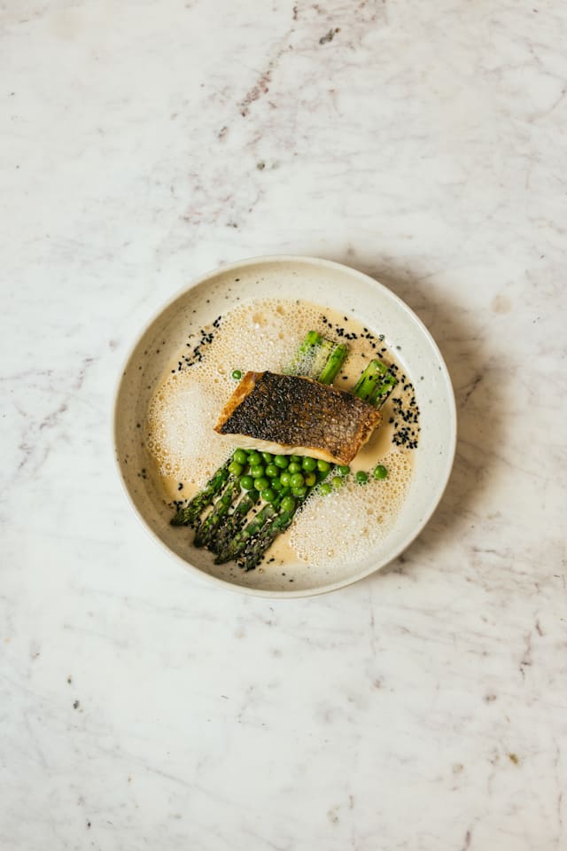 Succulent prawns grilled over charcoal, paired with a rich bisque made from their own heads and shells, delicately infused with fresh lemongrass. A dish that blends classic french technique with tropical freshness, balancing depth and lightness
