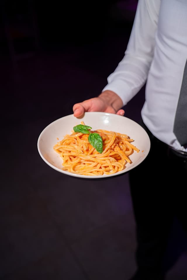 - Scialatielli bianchi con crema di scampi e granella di pistacchio