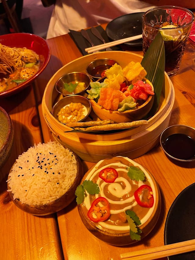 9/10Very well crafted menu and well executed. Very tasty food and with an amazing array of Asian receipes. Lovely cocktail list as well. Wonderful concept overall! One more wait person was needed for the amount of clients that night, or the reservations should have been better staggered to avoid a huge influx at the same hour of 20h. Not sure that the music matches the concept nor the ambiance of the place. Also, the TV screens featuring their other restaurants gets tiring after 30mns. Overall very positive experience.