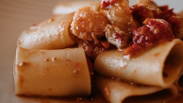 Ragù di noglia, funghi spadellati e pecorino grattugiato