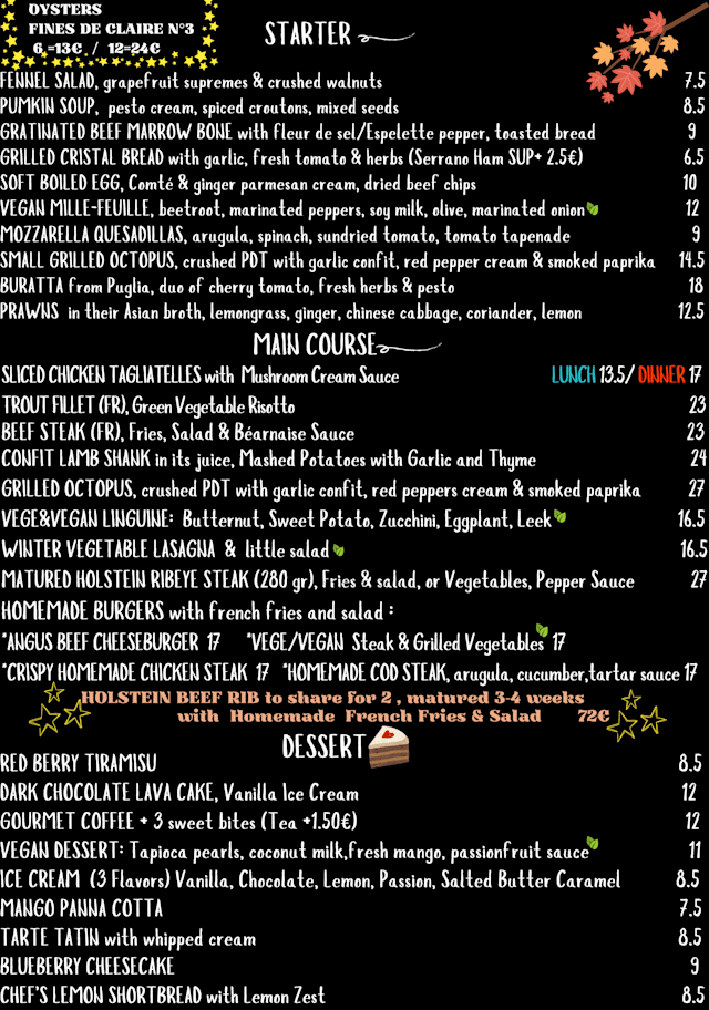 9/10Great food and welcome ! Cosy atmosphere good prices. Quite relaxed atmosphere