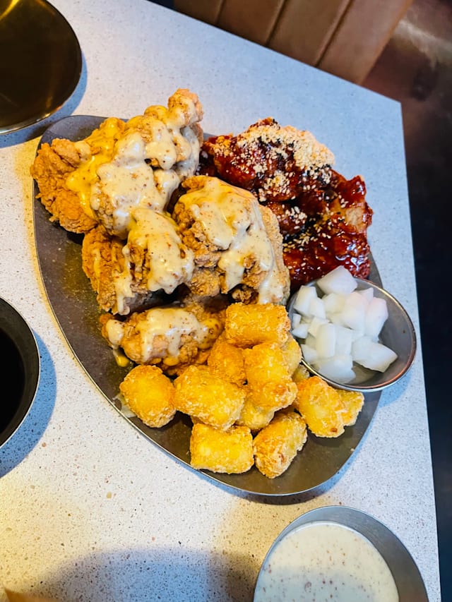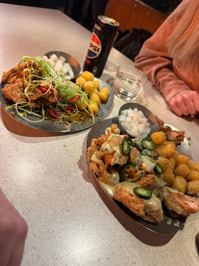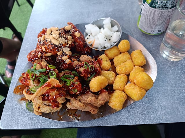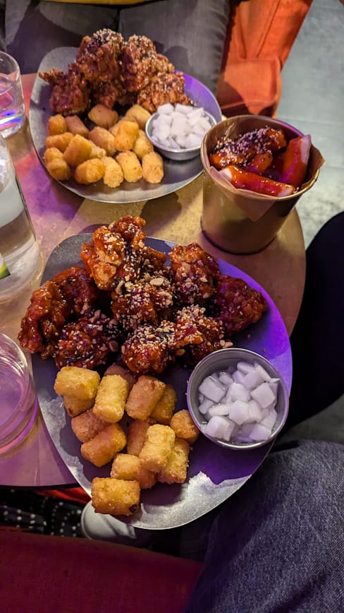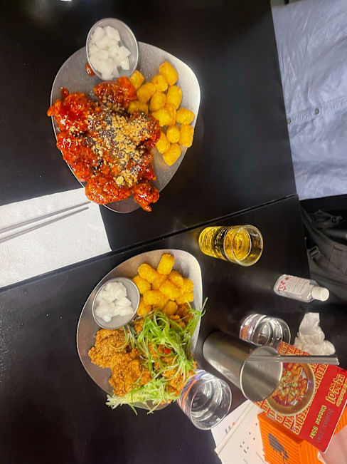 8/10The service was fantastic! However, my order was overlooked, and I ended up waiting about 45 minutes for my food, while my friends received theirs 15 minutes earlier. It was a bit frustrating, but understandable. The staff was incredibly friendly and helpful throughout. When the food finally arrived, it was absolutely delicious! We couldn’t finish everything, so we took the leftovers in to-go boxes. I’d recommend the Green Grape Soju over the Strawberry one, but the Ddalgi Cocktail is definitely better than the Soju Melona and Jeju Beach. As for the chicken, the Ppadak is a must-try!