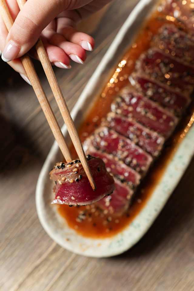 - Atún rojo sellado con sésamo y nuestro aderezo especial japonés