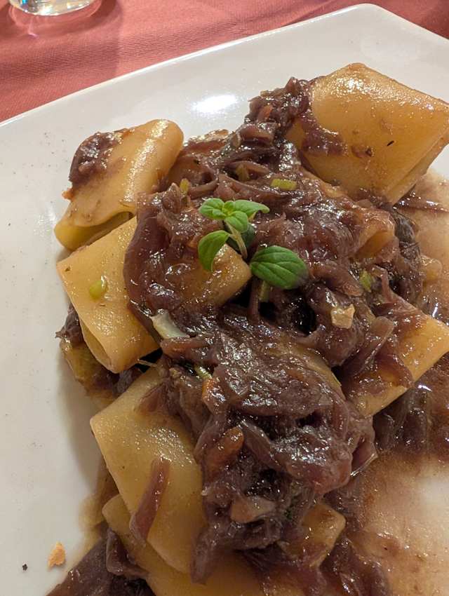- Pasta fresca condita con un sugo a base di broccoli baresi, pecorino romano e in pizzico di peperoncino
