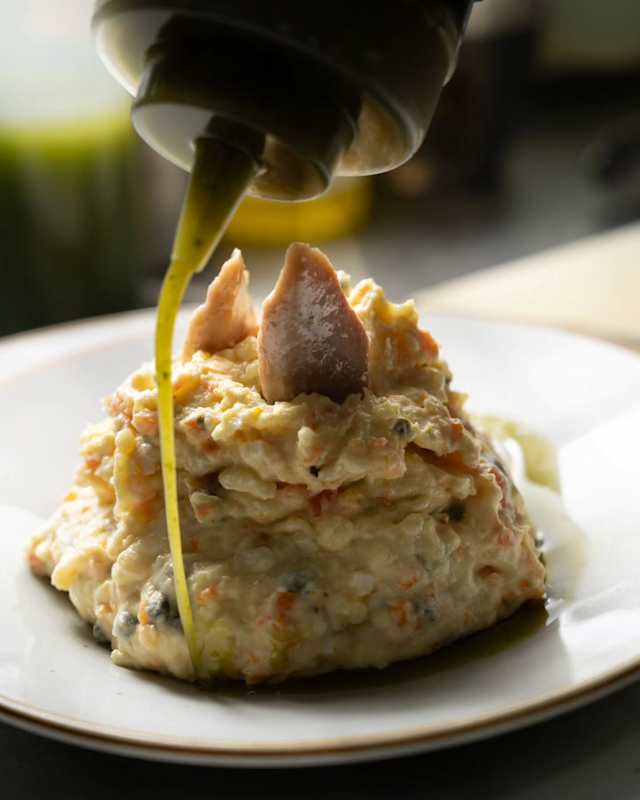 - Ensaladilla rusa casera con aceite de albahaca