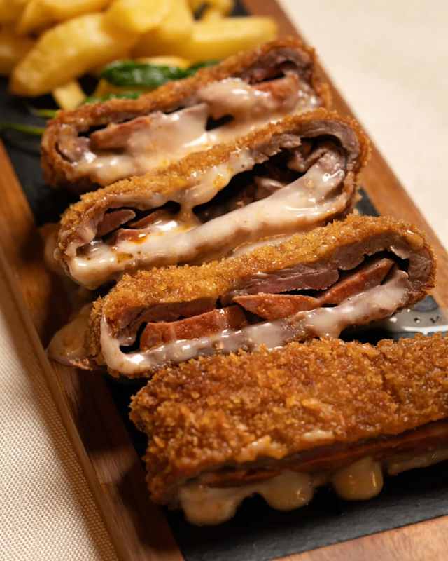 - Cachopo ternera blanca, papada de bellota y queso