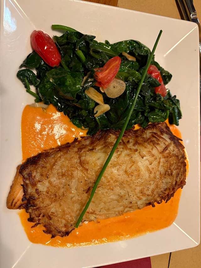 - Saumon en croûte de pommes de terre et pousses d’épinards