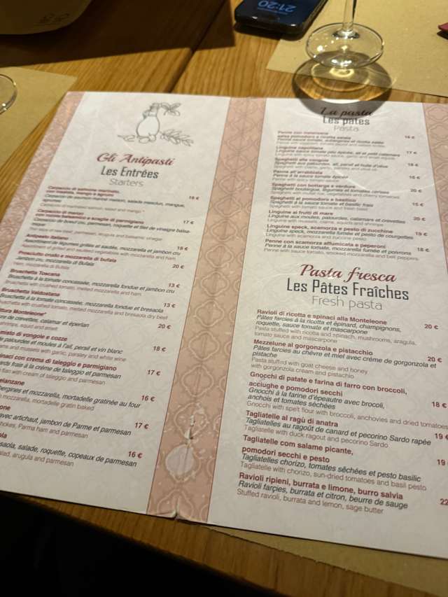 - Carpaccio de bœuf cru, parmesan, roquette et filet de vinaigre balsamique