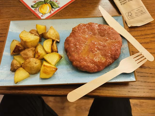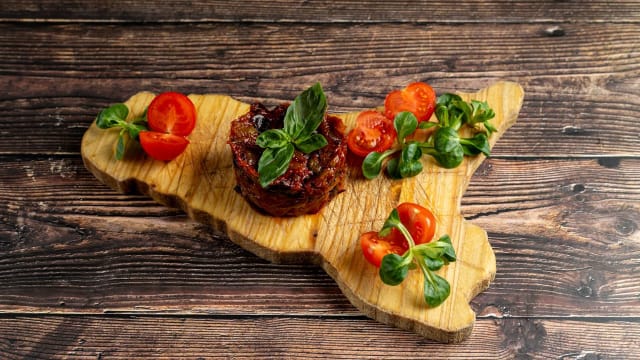 Dear Ruggero, thank you for your feedback. We would like to clarify that this location is different from the other two Montesoprano restaurants, as reflected in the name, which changes to 'Montesoprano Street.' Additionally, during the reservation process, it was clearly stated that table service is not included due to the simplified street food concept, and there was no charge for table service. You were informed of this beforehand! As for the caponata, traditionally, it is served cold, as you might have noticed in our other restaurants as well. We hope to see you again soon. The staff!