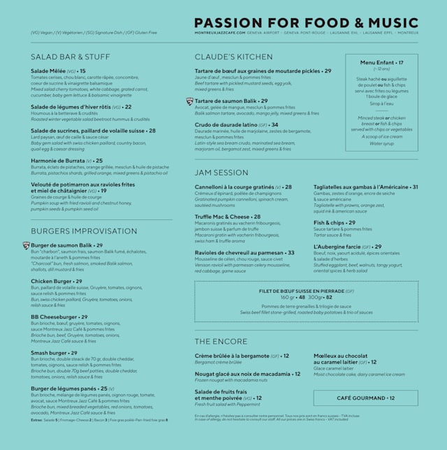 We hope to have the pleasure of welcoming you back to the Montreux Jazz Café in Geneva soon for more culinary discoveries and enchanting melodies.