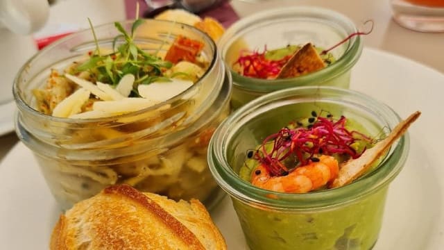 1 plat chaud + 4 verrines au choi x entrée et dessert / 1 main course + 4 glasses starter and dessert