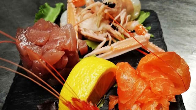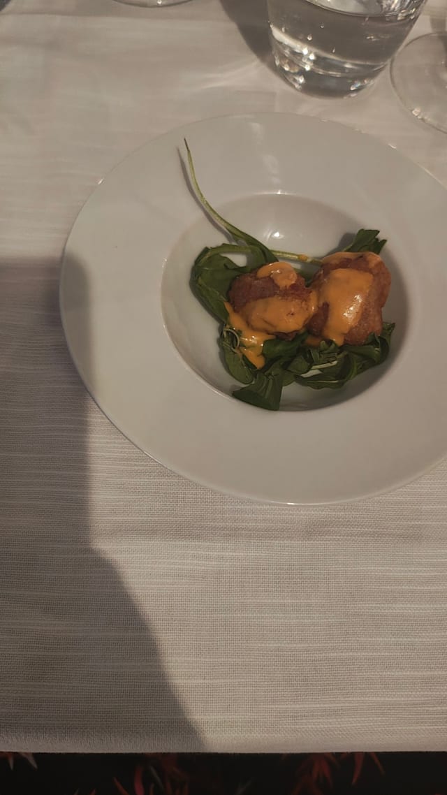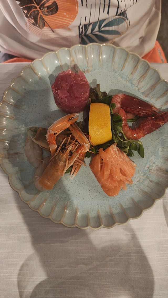 5/10The food was ok but I do not think that the dishes were well thought out. I had a salmon millefoglie; imbetween the layers of salmon fillet were strips of courgette, nicely cooked al dente, however this results in the fish being crushed into a mush when you try to cut this tower. Additionally the linguine ai gamberoni came with their shells on which may not bother some people but it is my preference to not have to peel them myself, especialy as the shells on these prawns were too hard to remove with cutlery and fingers were necessary.
