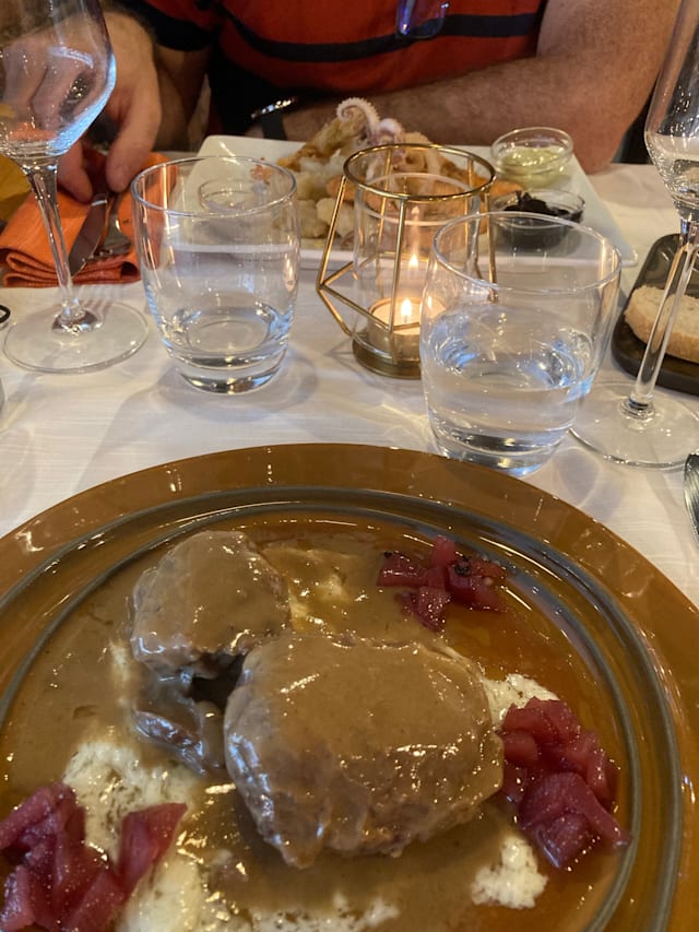 10/10Excellent food and wine (we went for the Chianti). The 4 of us were pleased with our dishes and the vegetarian options for the vegetarian of the table. Service was kind and explained well the dishes.