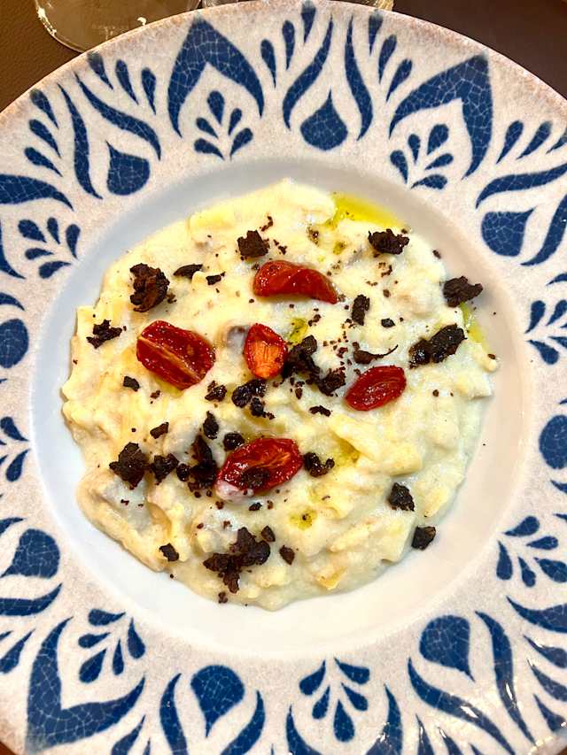 - Tubettone servito con vellutata di fagioli e cozze