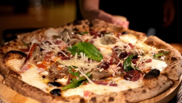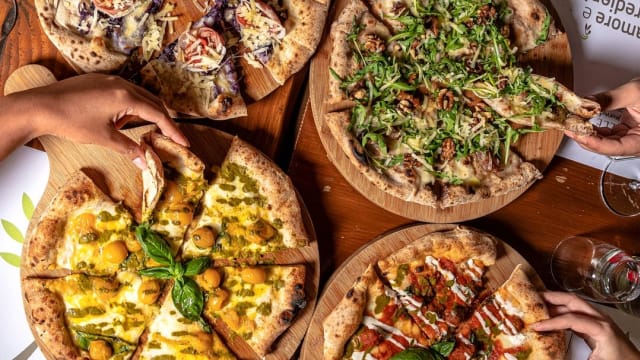 Montanarina con sugo semplice e parmigiano, montanarina con crema al parmigiano e pomodorino confit, montanarina con stracciatella, mortadella e pistacchio tritato