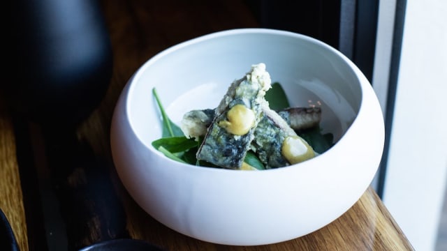 Tonno, shiso in tempura e salsa ume piccante