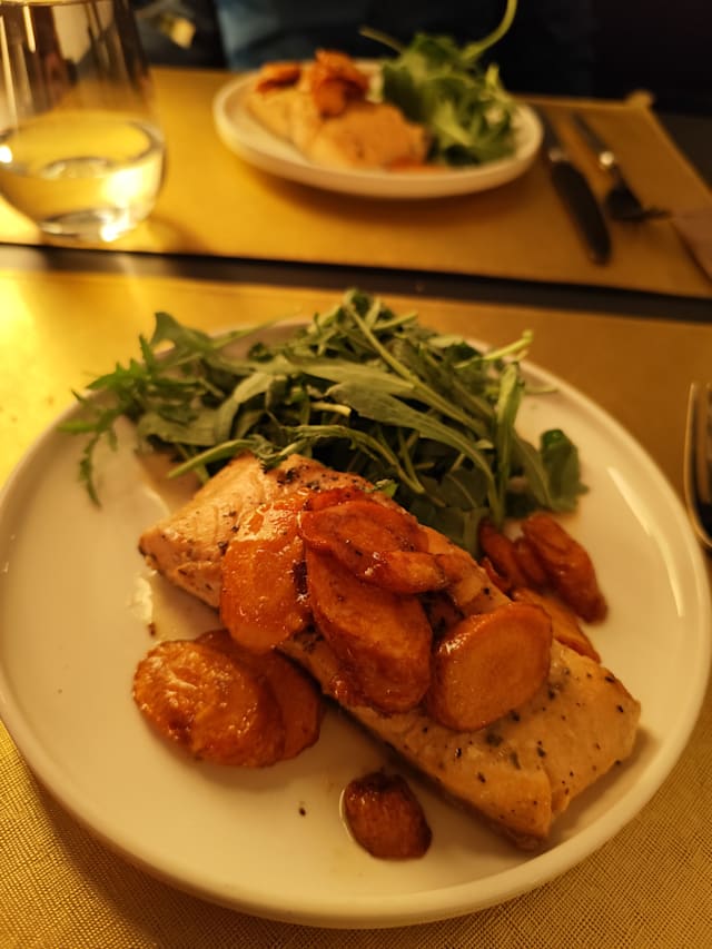 9/10The dinner was perfect, the dishes were sophisticated, the ambience was quiet, exactly what I wished for, the place is really nice and the vine selection was nice The service was excellent.