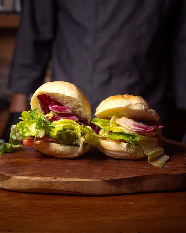 - Panino con salmone, avocado, insalata e pomodori