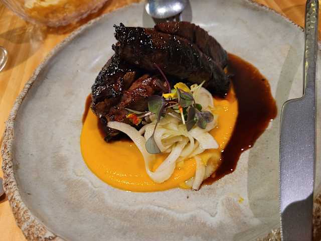 5/10Ignored when I arrived even though the restaurant was empty. Asked what I’d like to drink once seated and requested water. Given a cube of wood for a QR code menu, given a different one and that was also faulty, then at last was given a paper menu. I was just left to struggle for a while with the cubes. My phone has never failed to read codes previously. I wasn’t given a wine menu or asked whether I wanted wine and I decided not to bother. The skin wasn’t taken off the monkfish which I thought was a bit weird and the flavour wasn’t great.