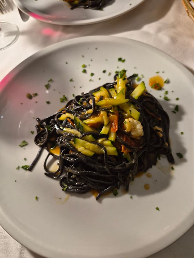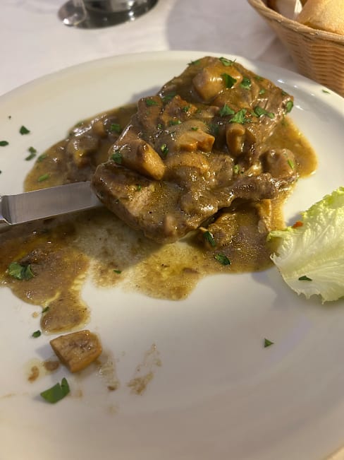 5.5/10We were in Milan for one night, in a horel in Rondo. We walked around looking for a good place to eat and after reading the reviews and visiting a few places we chose Ristorante Morganti 2. The atmosphere was great and typical for a local restaurant, but there was a strong smell of fried fish and leaving the place, we had it too. We had a reservation for 9.30 made online through The Fork, but got there early. They made us wait, so a table for four could be free. After 30 minutes outside, there still wasn't one available, so they joined two doubles that were available since we got there ?! Two of us (ot of four) received a welcome drink?! We asked for a pitcher of the house wine but were told there wasn’t any. Later on at the table next to ours a pitcher appeared. We had to ask again about it and we finally managed to receive one as well. We ordered steak Fiorentina (1kg for two) and two lasagnas, since the pizzas that were in the menu on the website ware unavailable for some reason. We asked for the steak to be very rare and surprisingly it came cut in a few thin slices, cooked separately. Some of them were rare, some of them weren't. It was altogether good, but not what we expected and not entirely rare. The lasagnas came in a deep plate full of sauce, but there were some cold layers in it, which makes us think it was frozen and then baked with the cheese. Overall we had a decent dinner (at best) with lots of compromises after an annoying wait. Would never recommend it, especially for the prices they ask