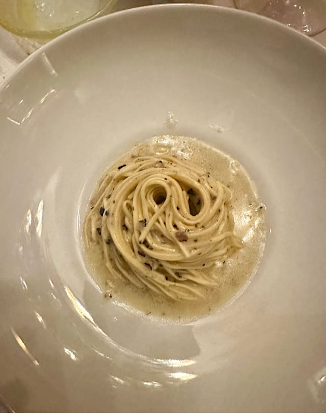 10/10This was the best meal my wife and I ever had… we followed the chef’s selections and received the following courses: Sweet and salty nuts 9/10 Olive oil and bread 8/10 Crab, figs, orange and celery cold 8.7/10 Beef carpaccio with Parmesan cheese & capers 9.5/10 La bistecca fiorentina 12/10 Linguine, monkfish, squid, saffron saice L, olive oil from Sicily 13/10 Veal cheek, mashed potatoes 10000/10 Deep fried Calamari with carrots, cucumbers, and lemon 150/10 Pistachio mousse and strawberries *insane The service was glorious. They treated my wife and I incredibly respectfully. This is a place where you’d want to tip…