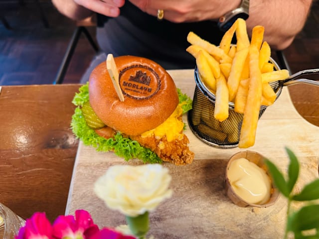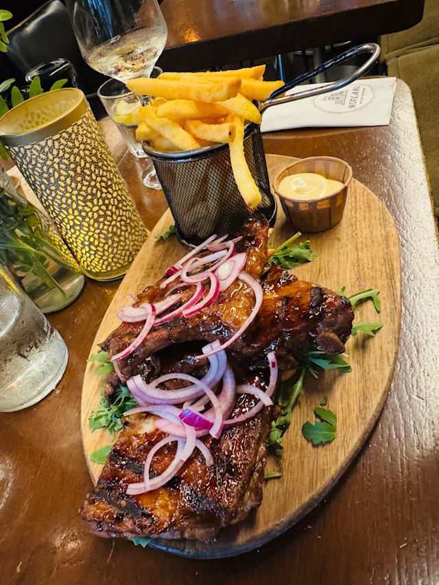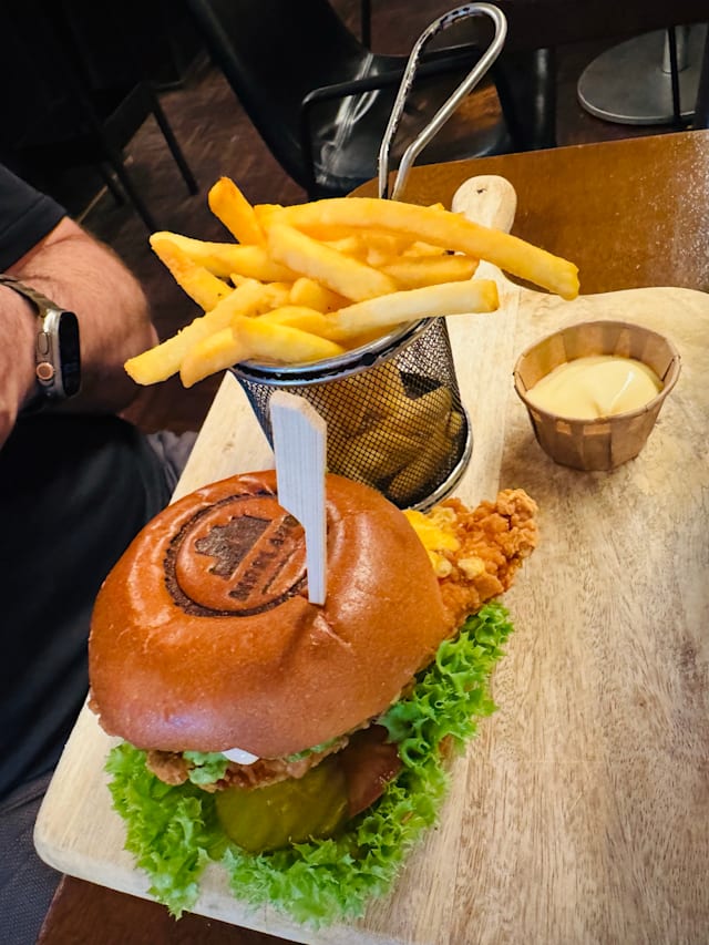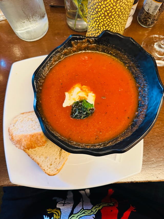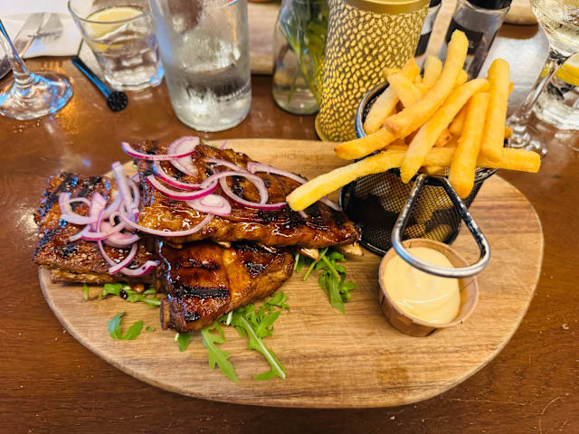 10/10+4I had a wonderful dining experience at this restaurant! The atmosphere was cozy and stylish with a beautifully lit bar and comfortable seating. The food was excellent: I started with a rich and flavorful tomato soup served with fresh bread. For the main course, I had juicy, perfectly grilled ribs topped with red onions and a side of crispy fries – simply delicious. The burger was also a highlight, with crunchy fried chicken, fresh lettuce, and pickles, served in a branded bun. The presentation was on point, and the staff was friendly and attentive. Highly recommended if you’re looking for a great place to enjoy quality food in a relaxed setting. Ik heb heerlijk gegeten in dit restaurant! De sfeer was gezellig en stijlvol met een prachtig verlichte bar en comfortabele zitplaatsen. Het eten was uitstekend: ik begon met een rijke, smaakvolle tomatensoep geserveerd met vers brood.