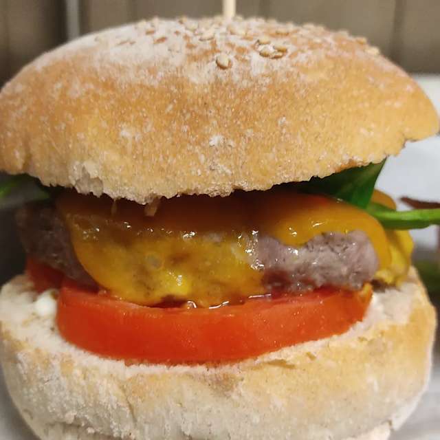 - 150 gr di carne piemontese, cheddar, bacon, pomodoro, insalata, maionese e ketchup. Serviti con patatine fritte comprese nel prezzo