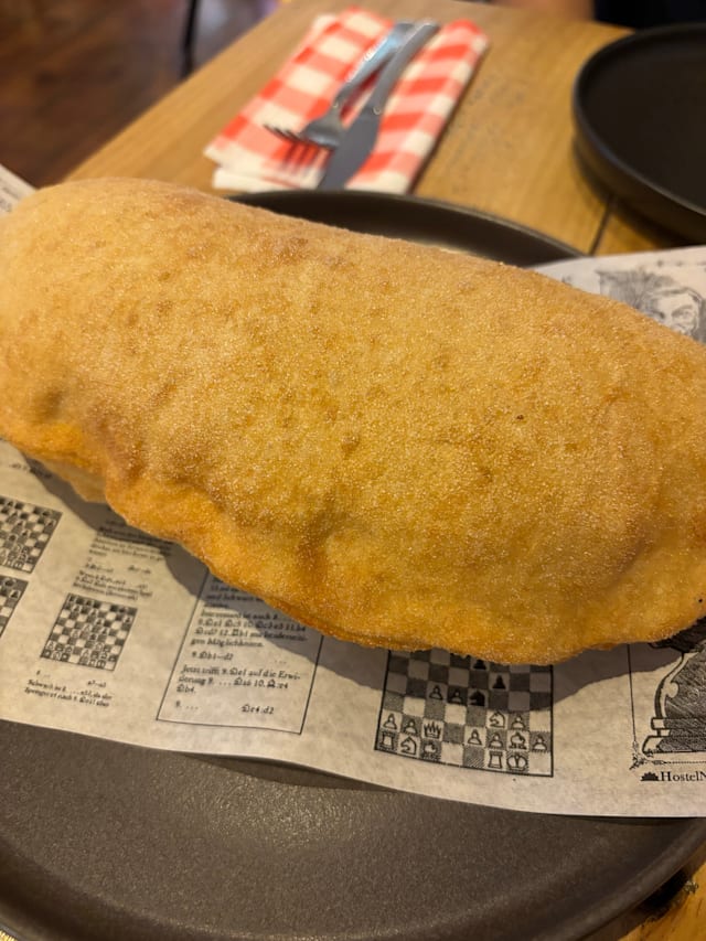 Un abrazo explosivo de sabores intensos. Rellena de chorizo picante calabrés, n’duja, salsa de tomate, mozzarella y ricotta fresca de vaca.