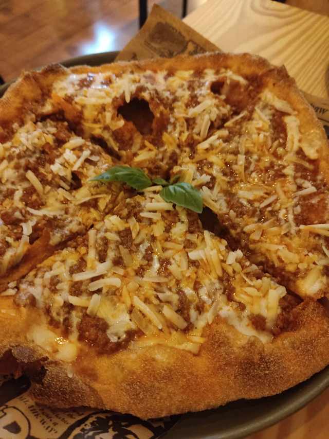 - Mozzarella, n’duja calabrese, cebolla morada, chorizo calabrese picante, miel y escamas de ricotta salada fuera del horno. Dulce, picante y cremosa...molaaa!