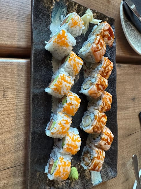 9/10The sushi was excellent as were the gyozas. However, the ramen was very salty. It had a cozy atmosphere and the service was great. Good price for the quality (with the discount). We will come back!