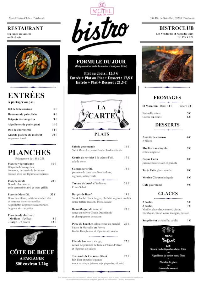 Menu du Réveillon du Motel Bistro Club€70 per guest