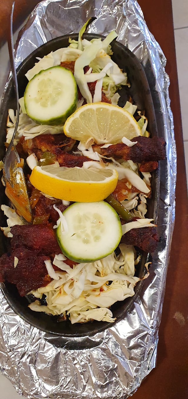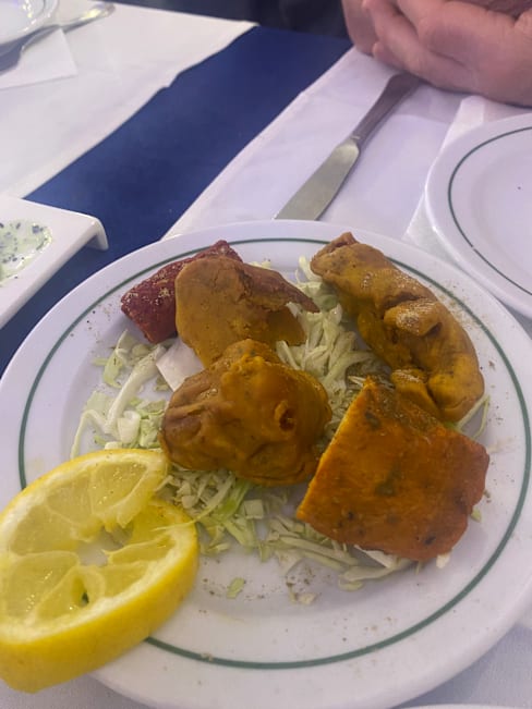 5.5/10On a Thursday evening in January we were the only customers so were given our choice of seats and a menu . As the restaurant was quiet we opted for bottled Cobra @ E6. Served in frosted glasses- a nice touch. We decided to share a mixed platter. The selection was nice & though meant for one person it suited us portion wise.We were surprised it came without dips. Next came the Chicken Xacutti -a good sized portion full of chicken with a nice level of heat and a sprinkle of coconut, Lamb Biryani which was on the small size & lacking in Lamb but flavoursome ,and a plain Nan The accompanying sauce for the Biryani was very mild and it was at that point we realised we hadn't been asked about the level of heat in out dish. We also received the dips which should have accompanied our starter. At the end l we were offered free shots to round off the meal but would have preferred complimentary poppadoms and dips at the beginning instead.,