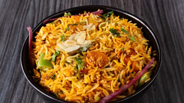 Succulent pieces of lamb cooked with basmati rice, rich spices, and a blend of fresh herbs for a hearty, flavourful dish.