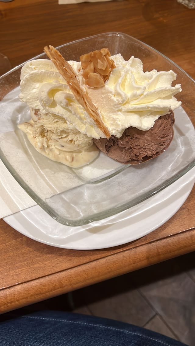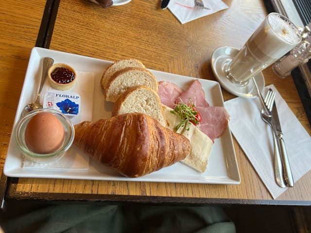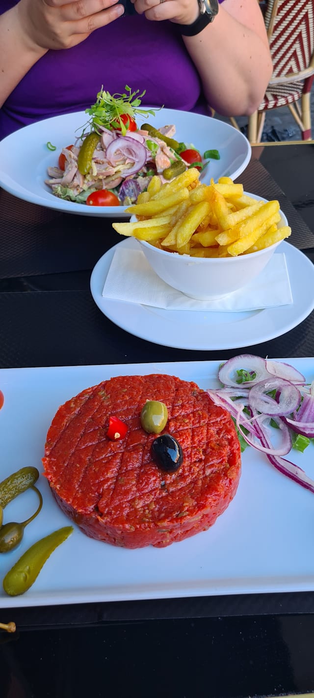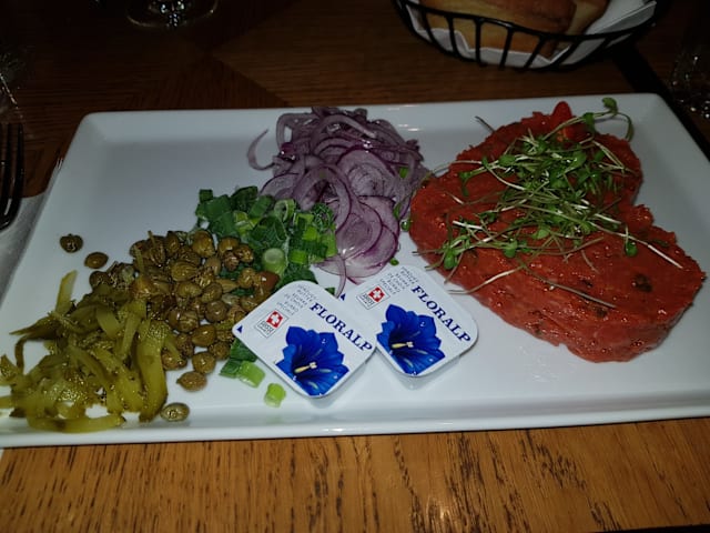 7.5/10When we arrived we waited a good 5 minutes while 3 serving staff basically ignored us even though we had booked. One eventually told us to sit anywhere. My son had a burger and chips which he said was good. I had the homemade roast beef. The roast beef was excellent but it was placed under and enormous salad which was then drenched in oil. The roast beef was soggy because of the oil. This was a shame as I wanted to enjoy the beef with the tartar sauce which came with it. There were too many olives on the plate as well. We were informed there was no icecream on the menu even though the Movenpick stall outside continued to serve icecreams.