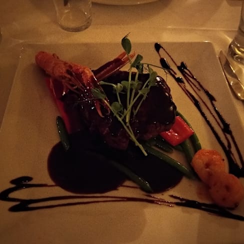 9/10The bruschetta was good, although the shrimp could have been more subtle in taste on their own, the combination of flavours in this dish was truly a culinary work of art. The surf and turf was of high quality, but the sauce could have been better. Don't take me wrong, it was certainly good, but it was not good enough to warrant 5/5 stars in the cullinary arts. The servers wine suggestion however hit home and paired really well with our dishes. The staffs smiles and jokes set the mood for a good evening out with family. Thank you for a lovely time.