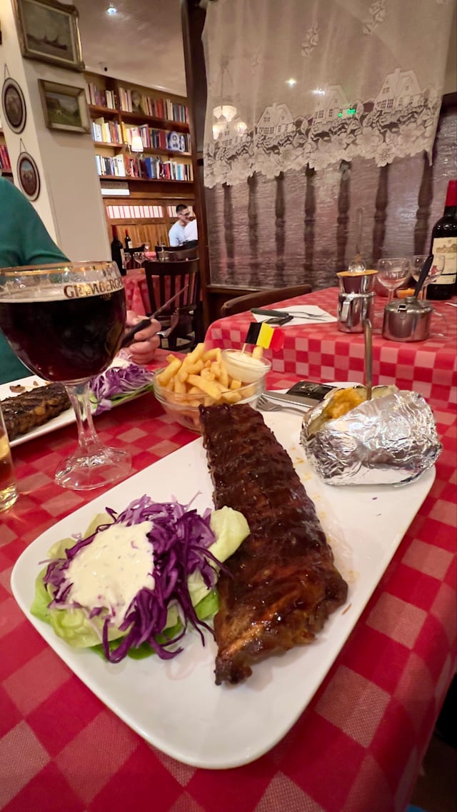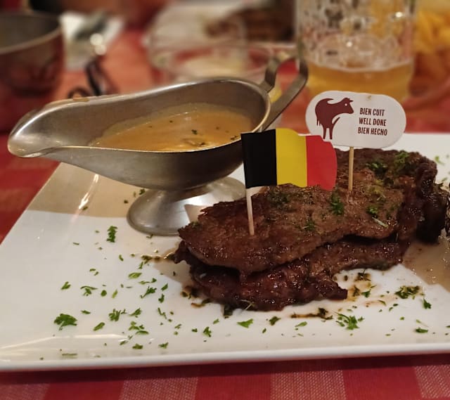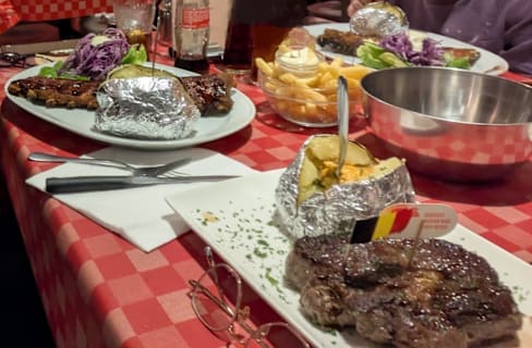 5/10Starters were quite OK, especially the garlic bread. The steak and entrecôte were not to recommend, so tough they were hard to chew and the kitchen mixed all the grilling grades, they were mostly overcooked. The service was not good, a single waitress trying to run from one table to the other, not the right day to go to that restaurant!