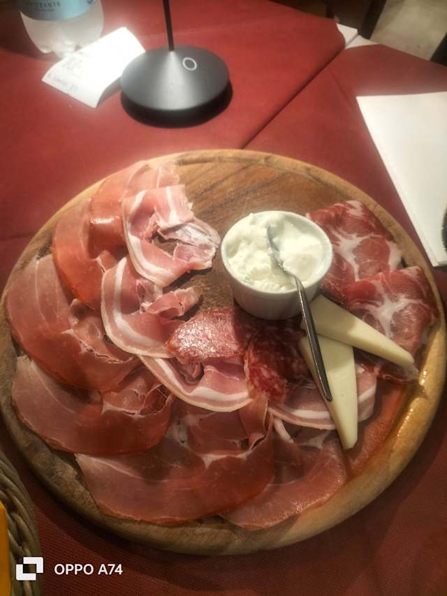 Tagliere di affettati e formaggi romagnoli con piadina calda