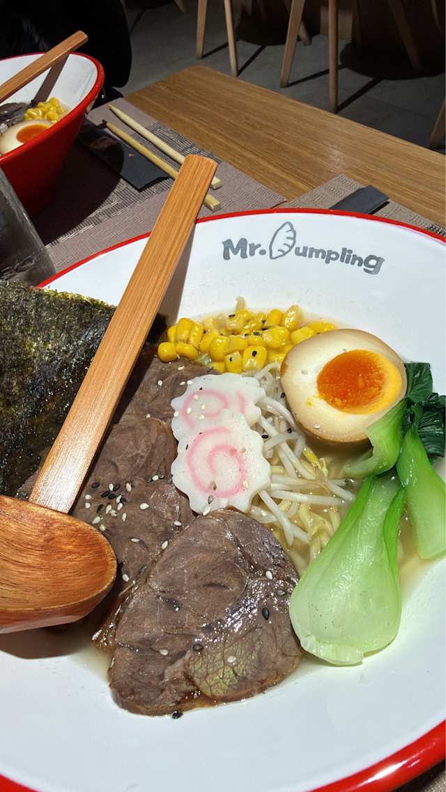 - Brodo di carne, manzo brasato, verdure, bambù e uovo marinato