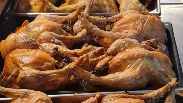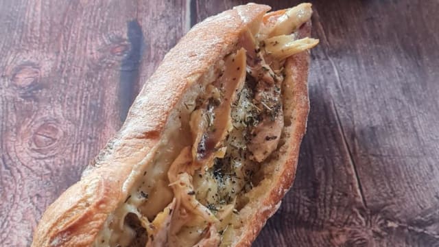 Poulet fermier (Label Rouge) rôti sur place, mayo moutarde à l'ancienne, Comté AOP affiné 24 mois, herbes de Provence