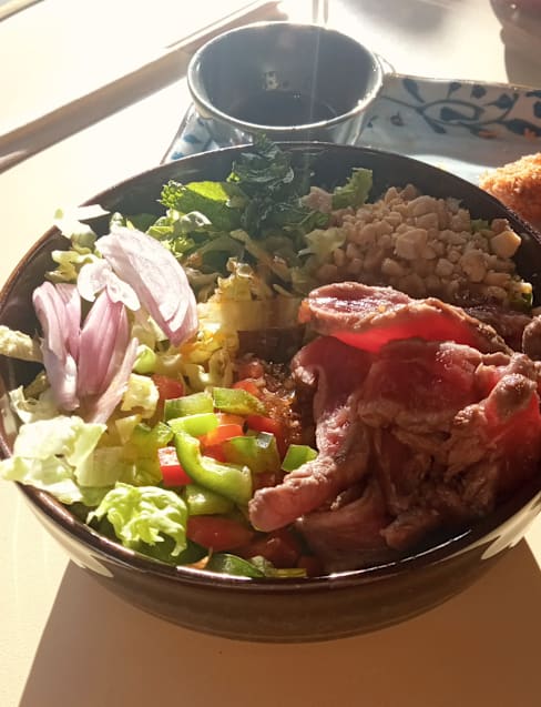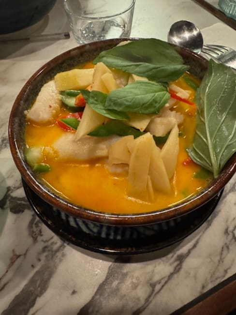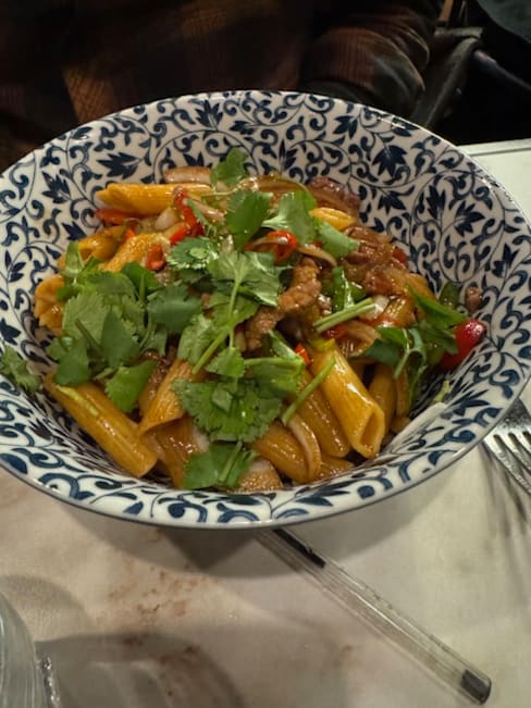 4.5/10Really odd restaurant. Does not deserve the high rating. At closer look the inconsistent and startlingly different reviews are important. Can’t help but wonder if the person who commented that the extremely good reviews may be fake is correct that they’re fake (note that the 5 star ratings have no photos). The food is NOT good. The salad vinaigrette tastes like kitchen cleaner. Spicy pasta in beef is not the way to do Asian fusion. “Seasoned” rice is plain white rice with a few shrimp and vegetables - no taste. The seafood curry is fine but nothing more than an unimaginative coconut milk - very tiny bit of seafood, fish, scallops and shrimp all tasted the same so probably was frozen seafood. Crème brûlée dessert was liquid and bad taste. The decor of the resto is very nice and the man is pleasant enough. Would have said it’s at least a very pleasant space to sit but it’s very unpleasant that there were a bunch of flies at our table throughout the meal.