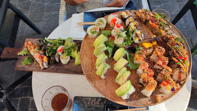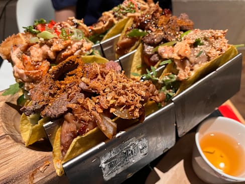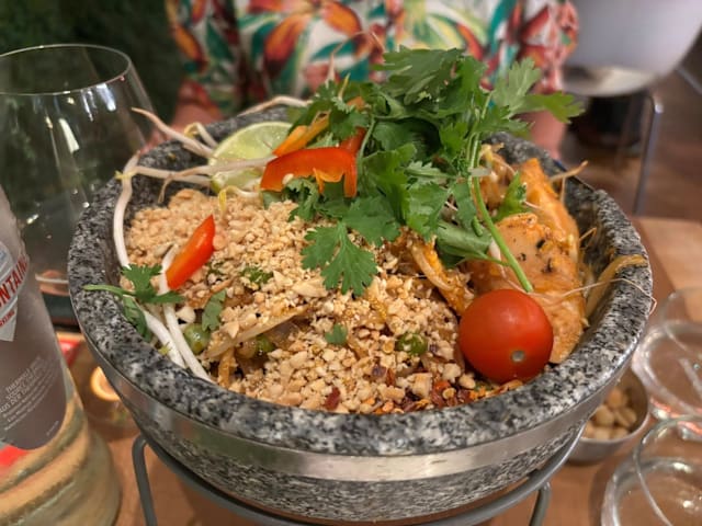 5/10The food was average and overpriced. Definitely not authentic (pad Thai with broccoli and zucchini? Same for the red curries... Meat on sushi tacos was chewey. The other sushi tacos (salmon, shrimp) were tasty. The waitress wipes plates with her finger and grabs cutlery by the side where guests put their mouths (not where they grab them). The bill had a mistake in it that was then corrected. Overall service felt chaotic and taste was below average for the price... Portion sizes were large, meaning many guests could take leftovers home. Ambiance/decoration was nice and looked clean.