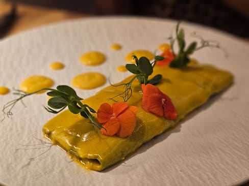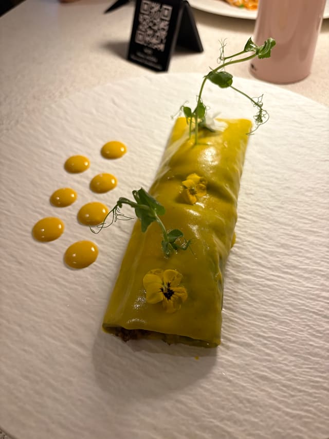 8/10The restaurant is beautiful and the ambience was very nice. The staff was attentive and available. They were also very kind by having a birthday candle on our dessert (I had mentioned we were celebrating a birthday). However the food was disappointing. Our rotolo was raw in the middle and a bit bland and the torrija we had for desert was cold (no contrast with the ice cream that was served with it).