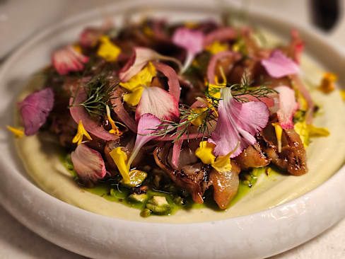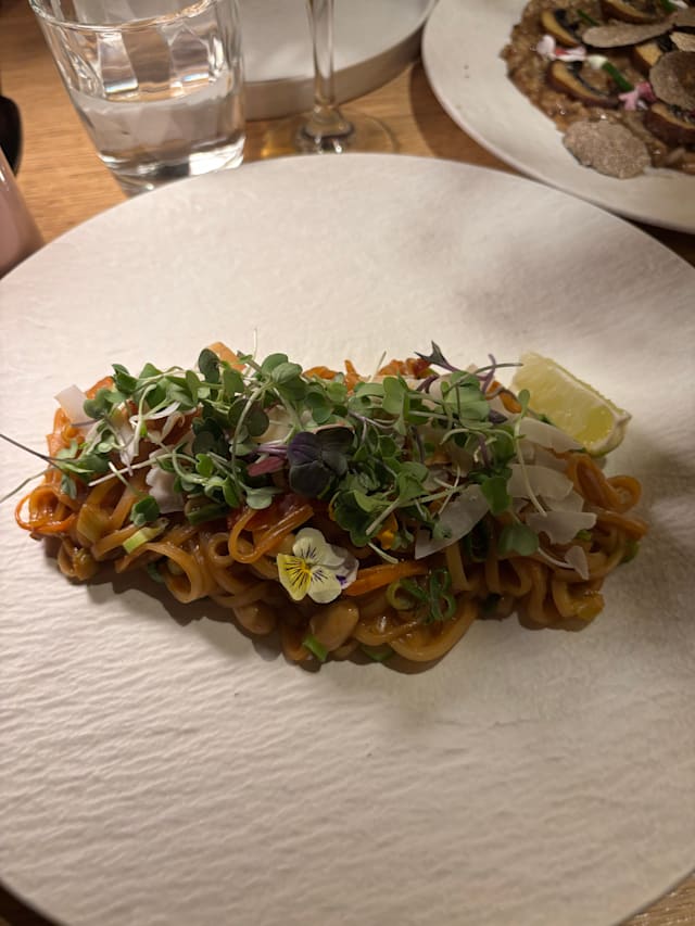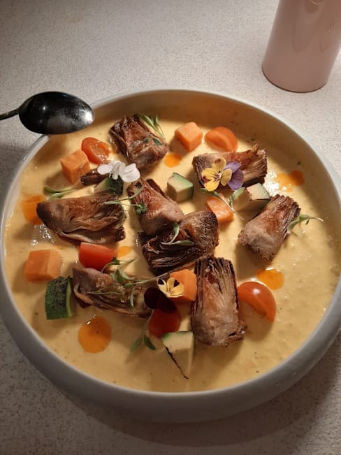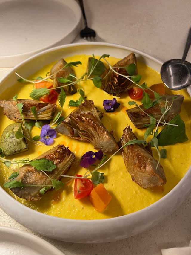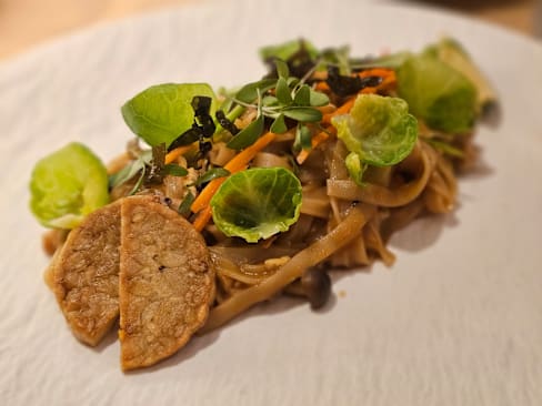 5.5/10Creative ideas for vegan food, but not enough to make a meal. Food arrived before drinks, got served one wrong dish (which we accepted to avoid waiting), and the wrong dessert (which we pointed out and got the right one). Perhaps food is basically assembled in the kitchen, not prepared. Too expensive for what it was, sorry to say