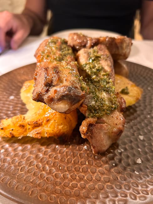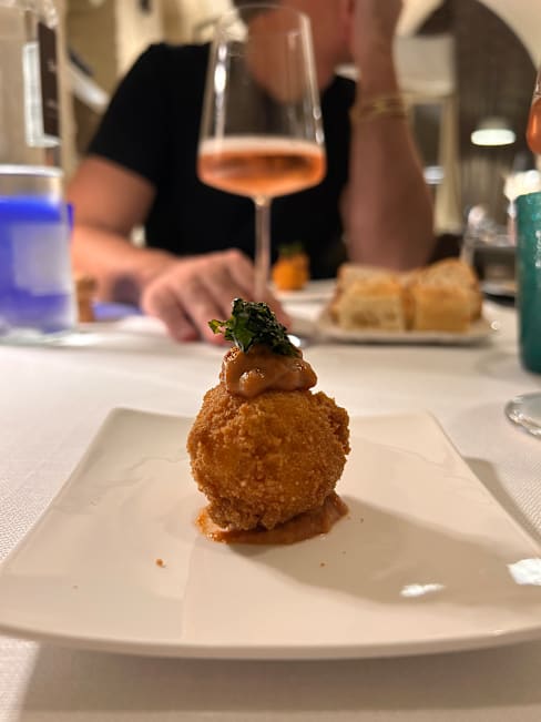 4/10Well, the ambiance is nice and the starter was excellent, the rest of the meal was a disaster. We’ve been in Italy for three weeks eating out every evening and this was the only terrible meal we had. The lamb rack was unremarkable and a small portion. The Chinta , was so overcooked it was in edible. The mushroom special was greasy, resembling something you’d find at a cheap tavern. Once the staff knew we were dissatisfied they no longer came around the table.