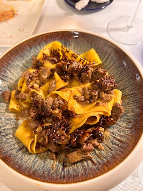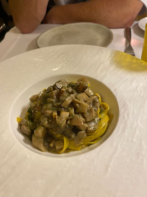 10/10We booked for lunch, and were not disappointed. The room we were in was large and bright with some colorful paintings. The staff was welcoming and friendly, very professional. They have a lovely selection of wines by the glass. They even have a couple of Coravin choices if you want to splurge. We shared our meal, starting with the pappa al pomodoro with stracciatella cream and basil sauce. It was rich and creamy, and the flavors perfectly balanced. Next we had a special tagliatelle with porcini mushrooms. The pasta was cooked perfectly and the mixture of porcini and fresh mushrooms was rich and flavorful. Finally we had the pork ribs. The sweet and sour onions and the lightly dressed salad were a perfect foil to the rich meat. Portions were nice, easy to share. And we were satisfied but not stuffed at the end of our meal. I would definitely recommend a visit if you are in Siena and feel like treating yourself to a lovely quiet meal.