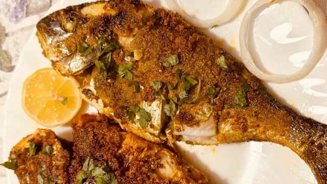 - Pescado o gambas cocinadas en salsa de coco y especias indias.