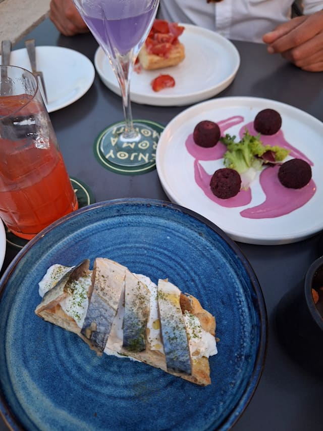 5/10the waiters work very slowly. it started raining, we all had to go inside from the terrace. and there were only two tables inside. that the waiters brought the prepared table from the field and did not bring it. then you see that the rain is coming. could spread the sketches. service is poor. cocktails are also bad. I don't know why this place has such a good rating