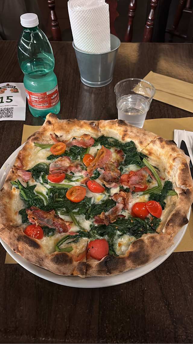 - Bacon, mozzarella, pomodoro, funghi piccanti